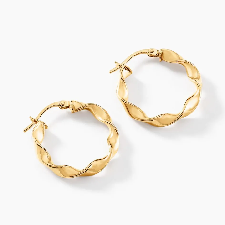Creoles Or Jaune 750/1000 Rondes Fil Rond Torsade 3.1mm Largeur Diametre 15mm