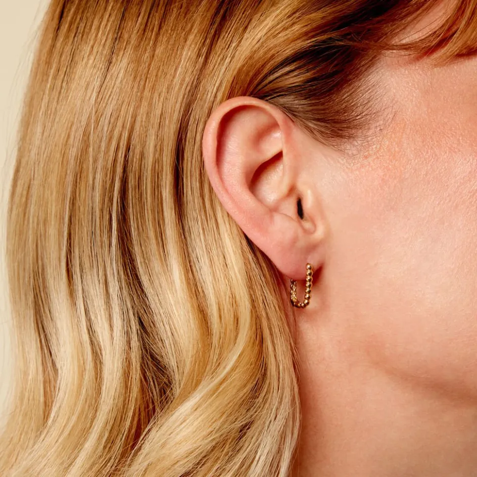 Creoles Or Jaune 375/1000 Fil Boule Lisse Rectangles 16Mm
