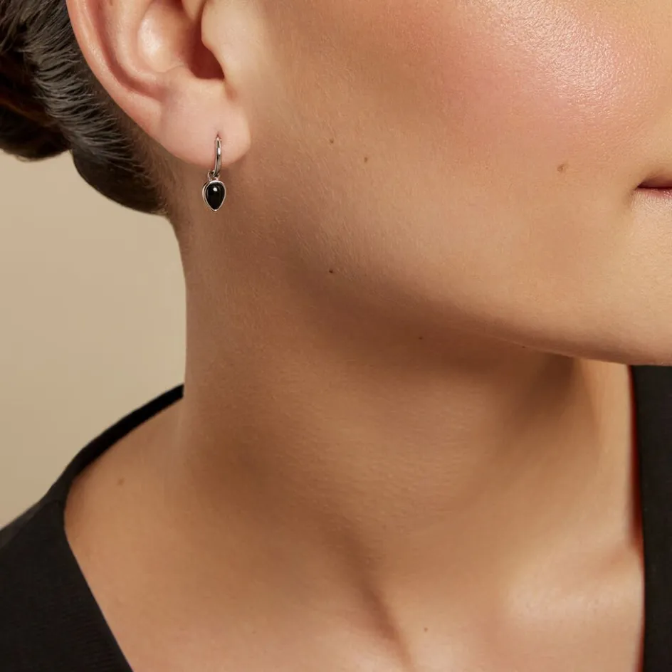 Créoles Argent Blanc 925/1000 Gouttes Agate Noire Diamètre 8mm