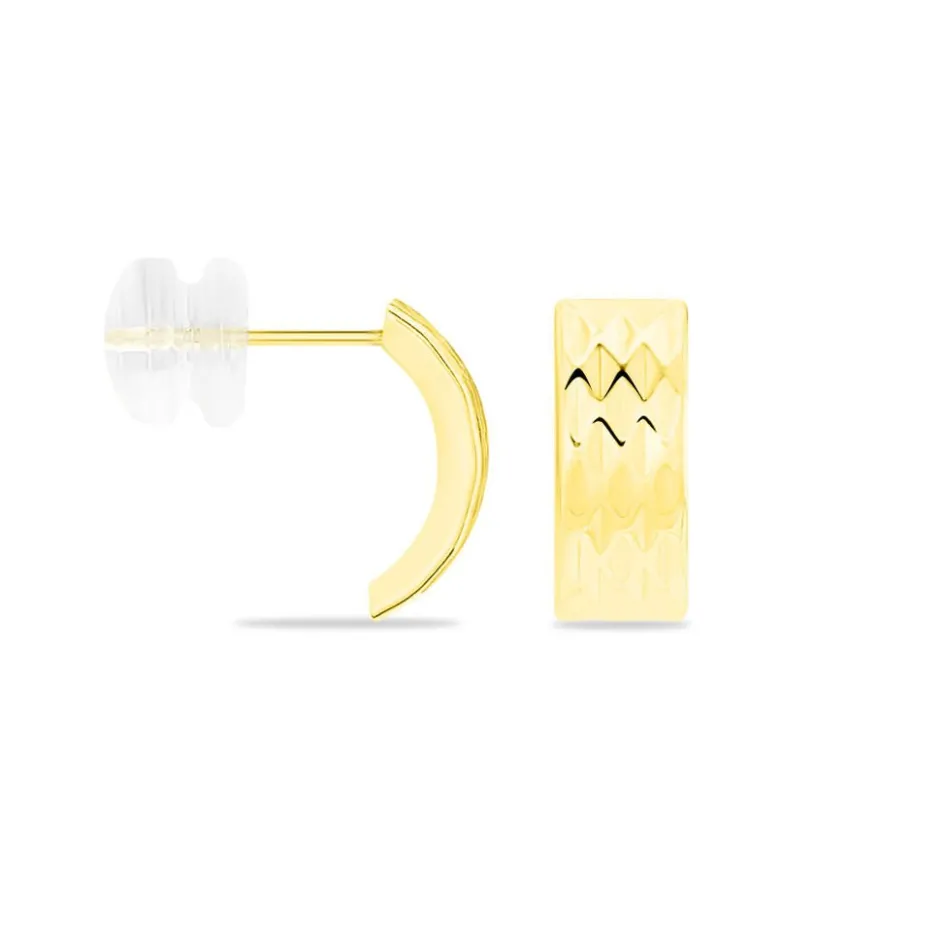 Créoles Or Jaune 375/1000 Demi Cercle Diamantées Losanges Diamètre 11.2mm