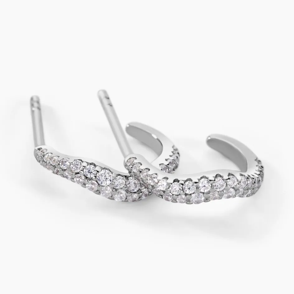 Créoles Ouvertes Argent Blanc 925/1000 Formes Organiques Pavage Oxydes De Zirconium Diamètre 8mm