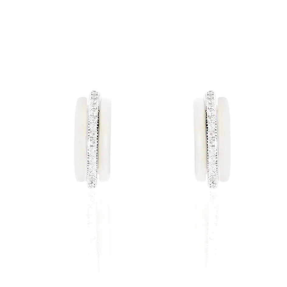 Demi Creoles Ceramik Design Argent Blanc 925/1000 Et Ceramique Blanche Pavage Oxydes De Zirconium