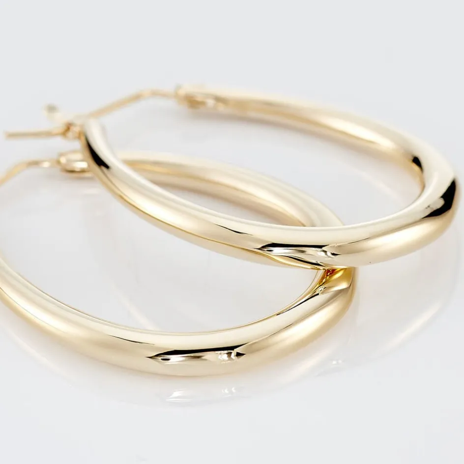 Creoles Plaqué Or Jaune Forme Ovale Diametre 34*25mm