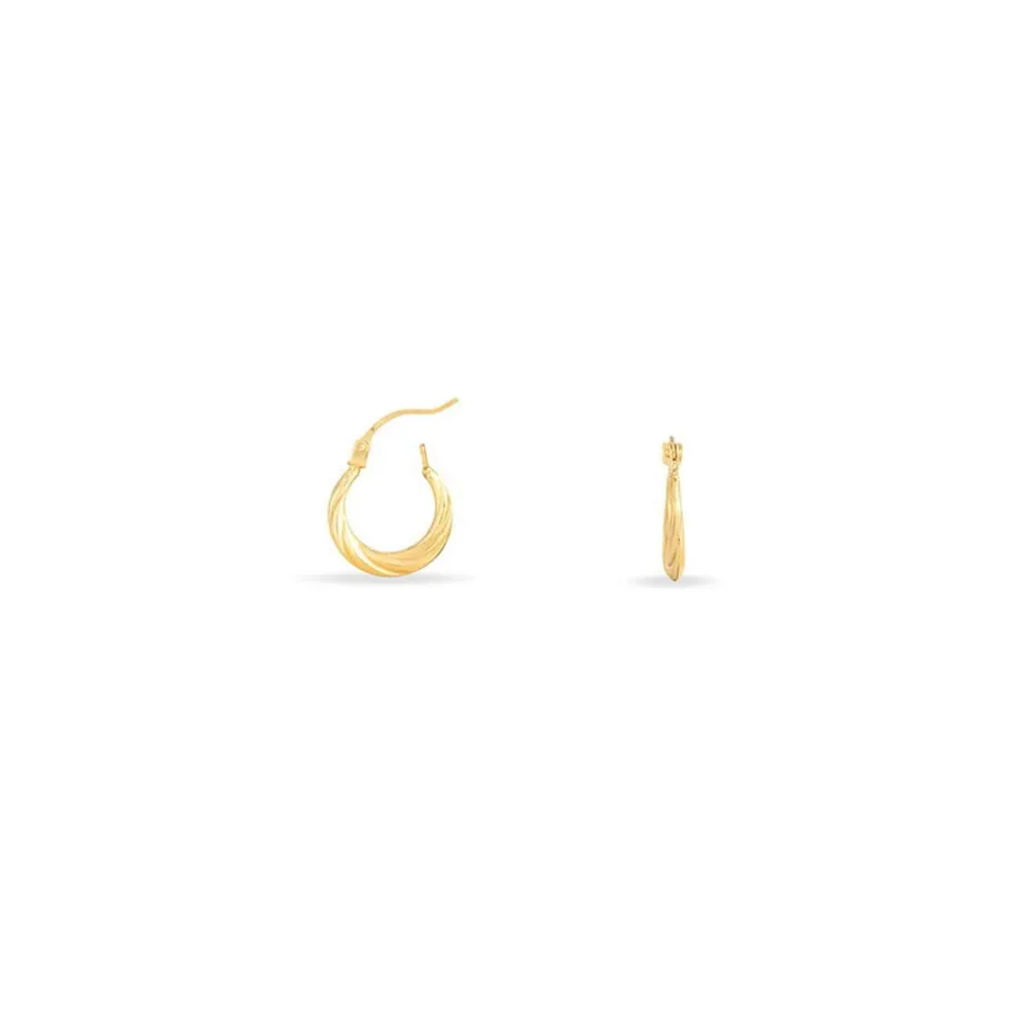 Créoles Or Jaune 375/1000 Ovales Fil Bombe Torsadé Largeur 1.3mm Diamètre 11mm