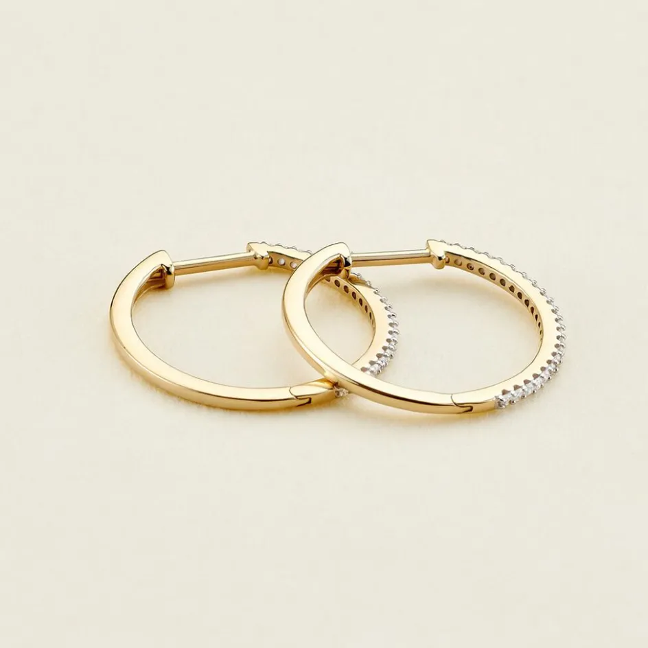 Creoles Or Jaune 375/1000 Pavage Diamants Diametre 15mm