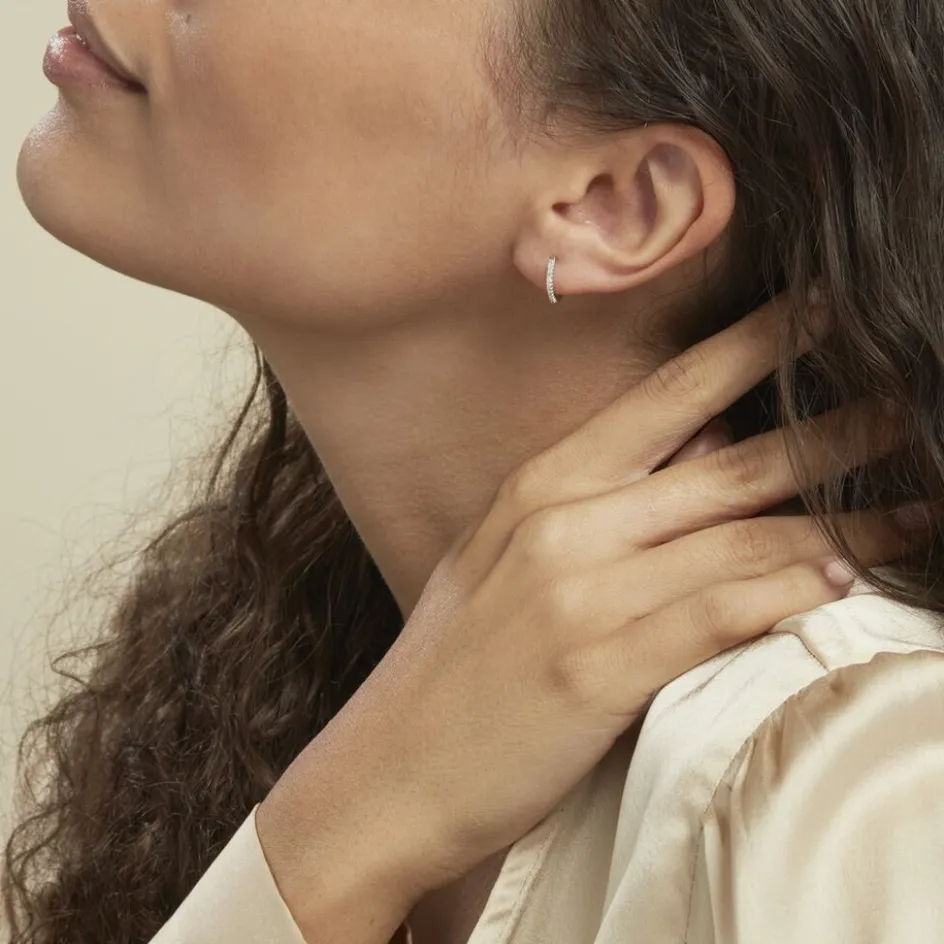 Creoles Or Jaune 375/1000 Pavage Diamants Diametre 12mm