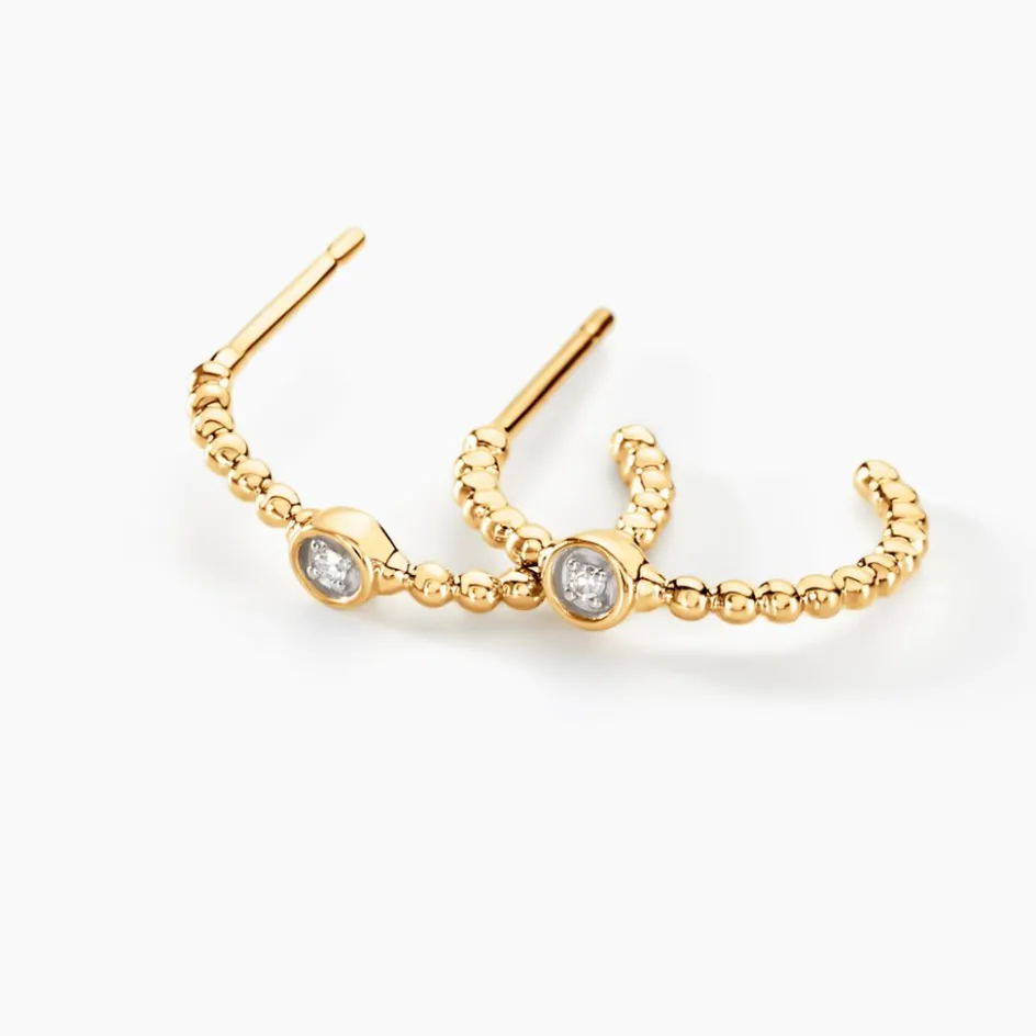 Creole Or Jaune 375/1000 Demi Cercle Effet Perle Avec 1 Pastille Pavage Diamants 0.01cts
