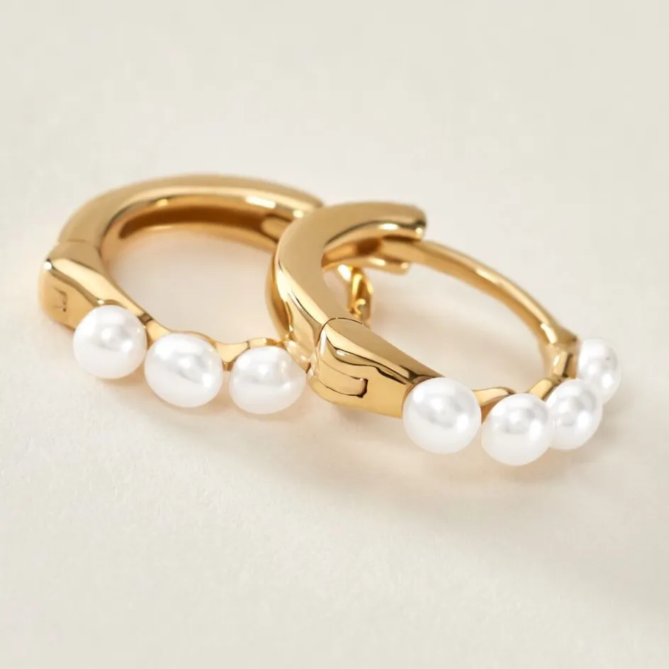 Créoles Or Jaune 375/1000 Le De Culture Blanche Serti Collé 7.5mm