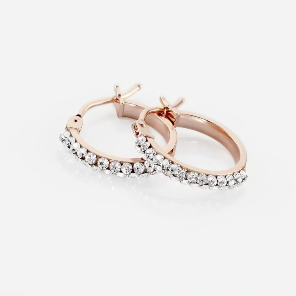 Créoles Or Rose 375/1000 Fil Carré Strass Largeur 2mm Diamètre 13.7mm