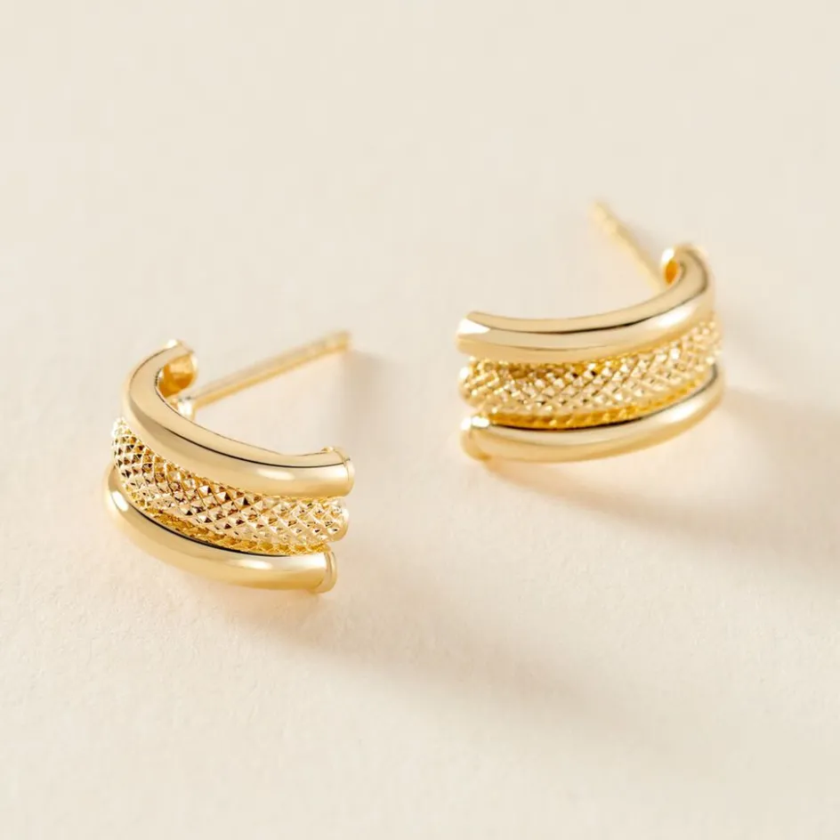 Demi Creoles Or Jaune 750/1000 Effet Diamante