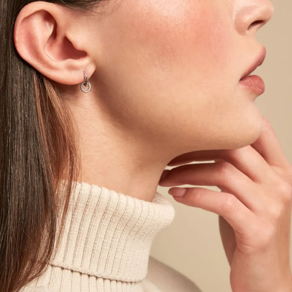 Creoles Argent Blanc 925/1000 Effet Torasade Pampilles Cercles Diametre 6.6mm