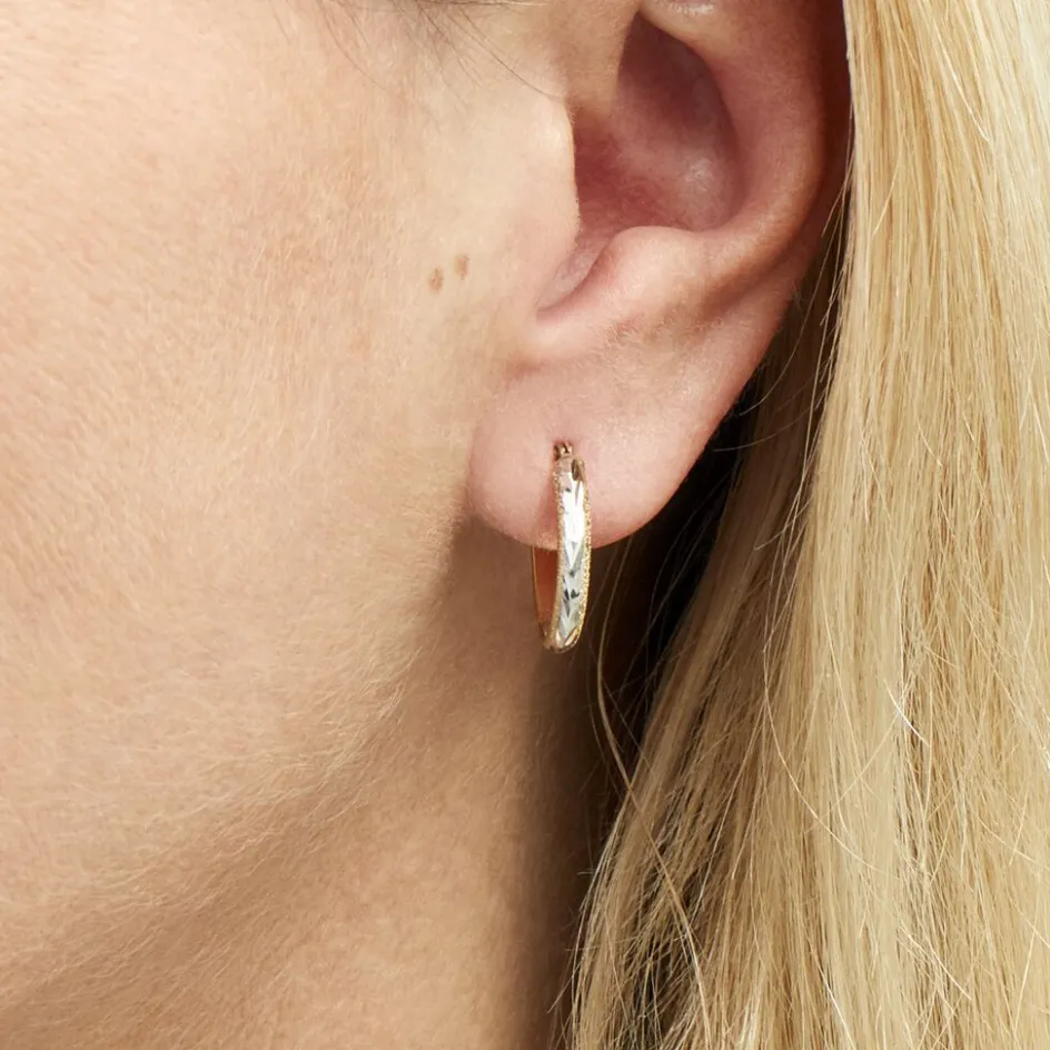Créoles Or Jaune 375/1000 Fil Plat Effet Diamanté Largeur 2.8mm Diamètre 12mm