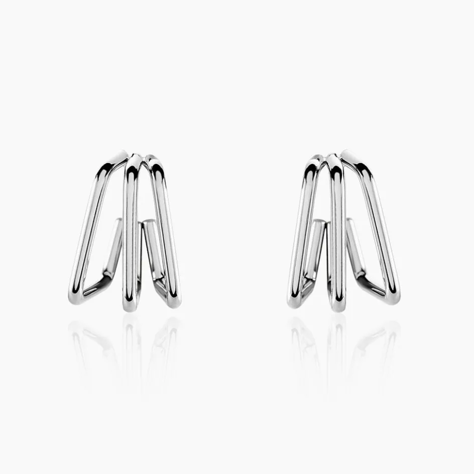 Créoles Acier Inoxydable Blanc Géométrique Triple Rang Diamètre 20mm