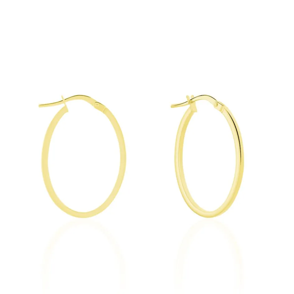 Créoles Or Jaune 375/1000 Ovales Fil Carré Lisse Largeur 1.5mm Diamètre 15x23mm