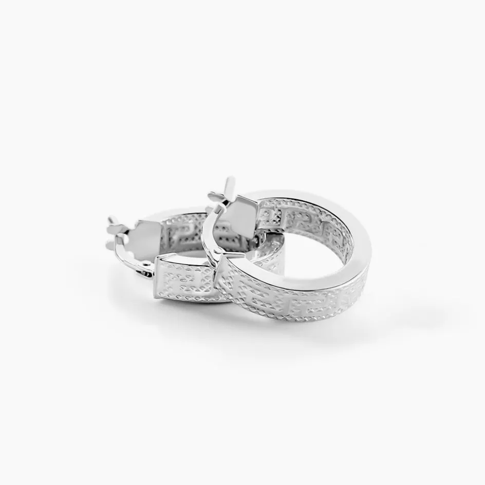 Créoles Or Blanc 375/1000 Fil Carré Grec Largeur 4mm Diamètre 10mm