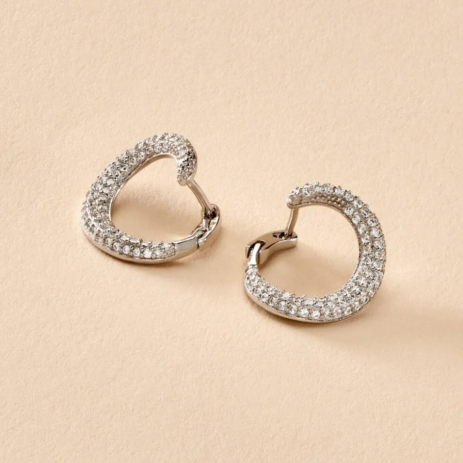 Créoles Argent 925/1000 Differenciante Pavage Oxydes De Zirconium Diamètre 17mm