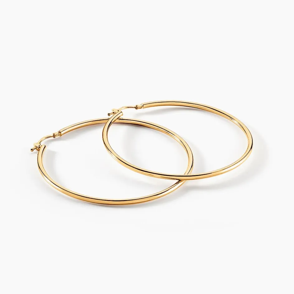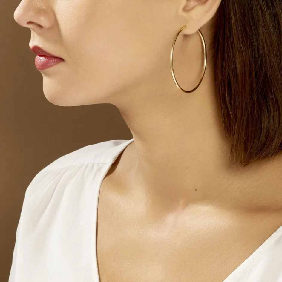 Créoles Or Jaune 375/1000 Fil Rond Lisse Largeur 2mm Diamètre 50mm