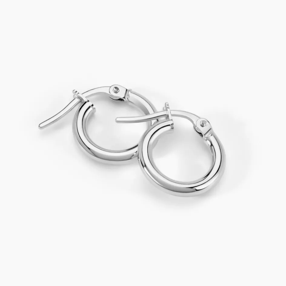 Créoles Or Blanc 375/1000 Fil Rond Lisse Largeur 2mm Diamètre 8mm