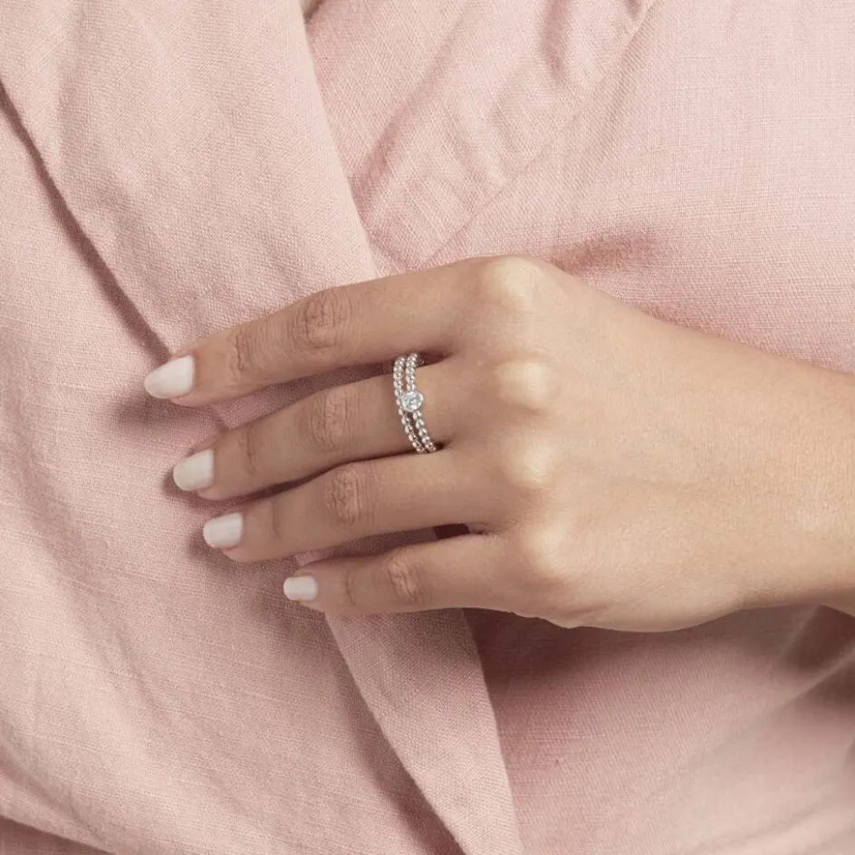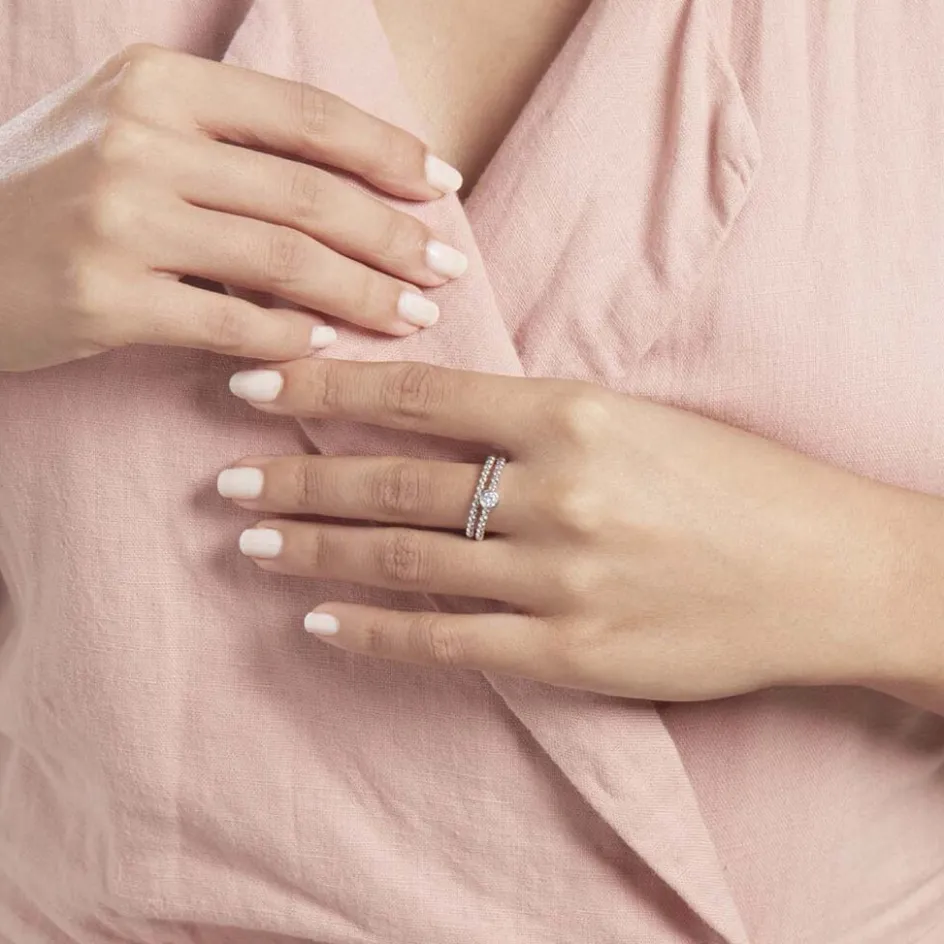 Duo De Bagues Argent 925/1000 Solitaire Et Anneau Micro Setting Oxyde De Zirconium