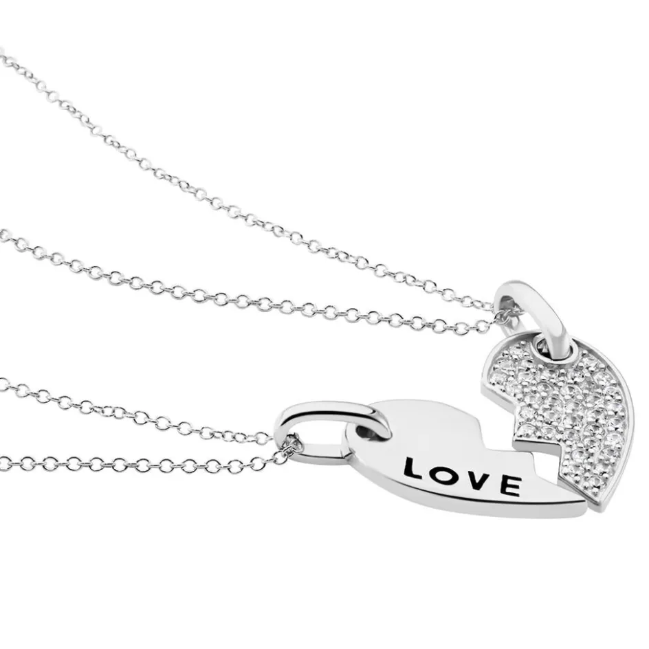 Duo De Colliers Argent 925/1000 C艙ur Separable Love Oxyde 50cm