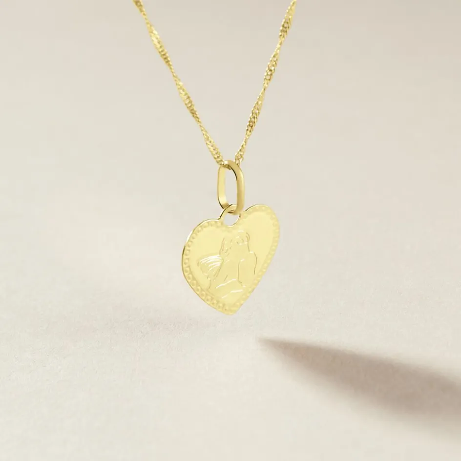 Pendentif Or Jaune 375/1000 Coeur Ciselee Motif Ange Penseur
