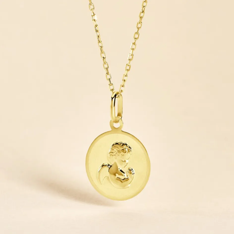 Medaille Or Jaune 375/1000 Ronde Motif Ange