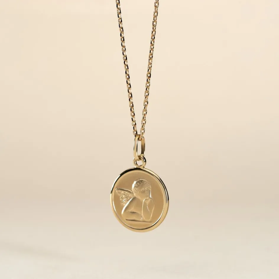 Pendentif Or Jaune 375/1000 Médaille Ronde Motif Ange Penseur Mat
