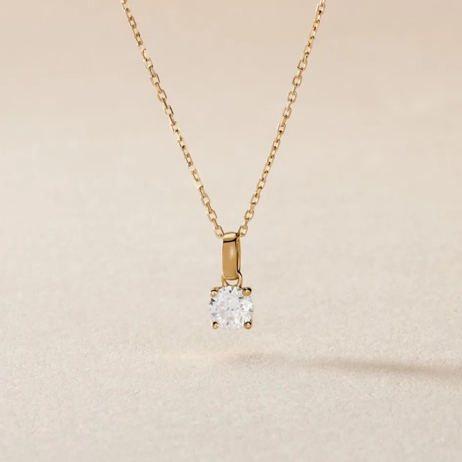 Pendentif Solitaire Or Jaune 375/1000 Diamant 0.35cts Serti 4 Griffes