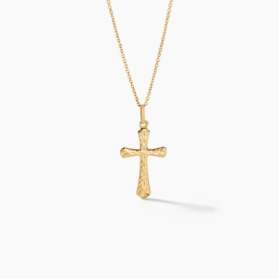 Pendentif Or Jaune 375/1000 Motif Croix Religieuse Striée