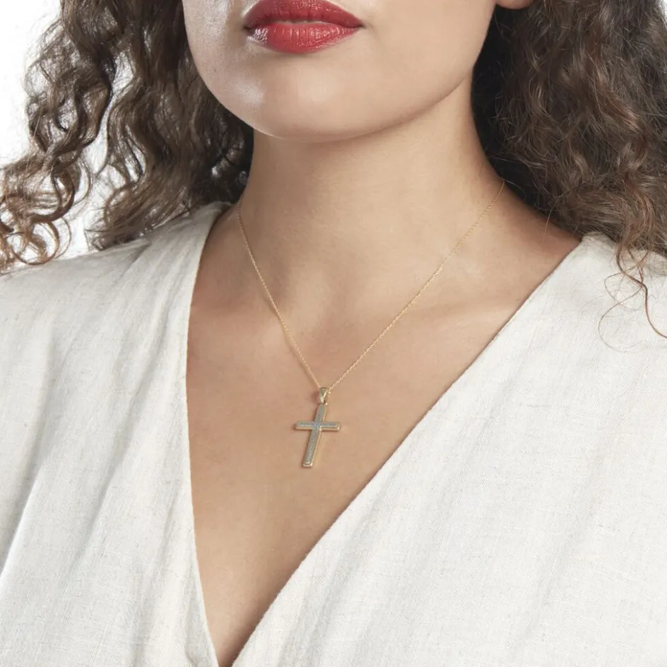 Pendentif Or Bicolore 750/1000 Croix Ciselée