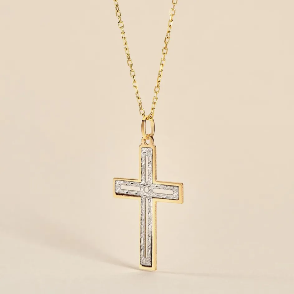 Pendentif Or Bicolore 375/1000 Motif Croix Diamantee