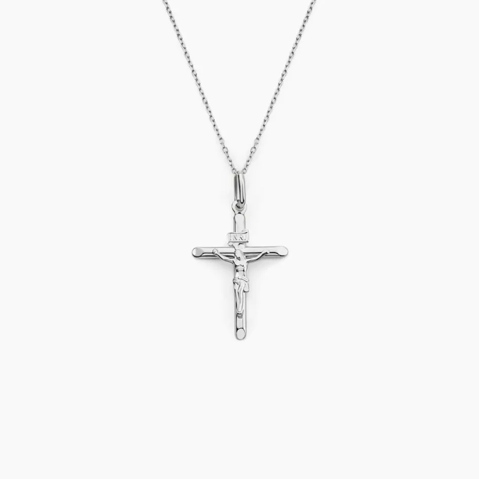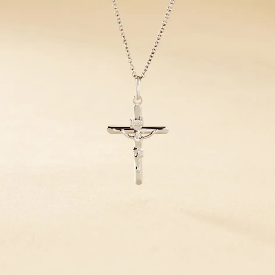 Pendentif Or Blanc 375/1000 Motif Croix Christ