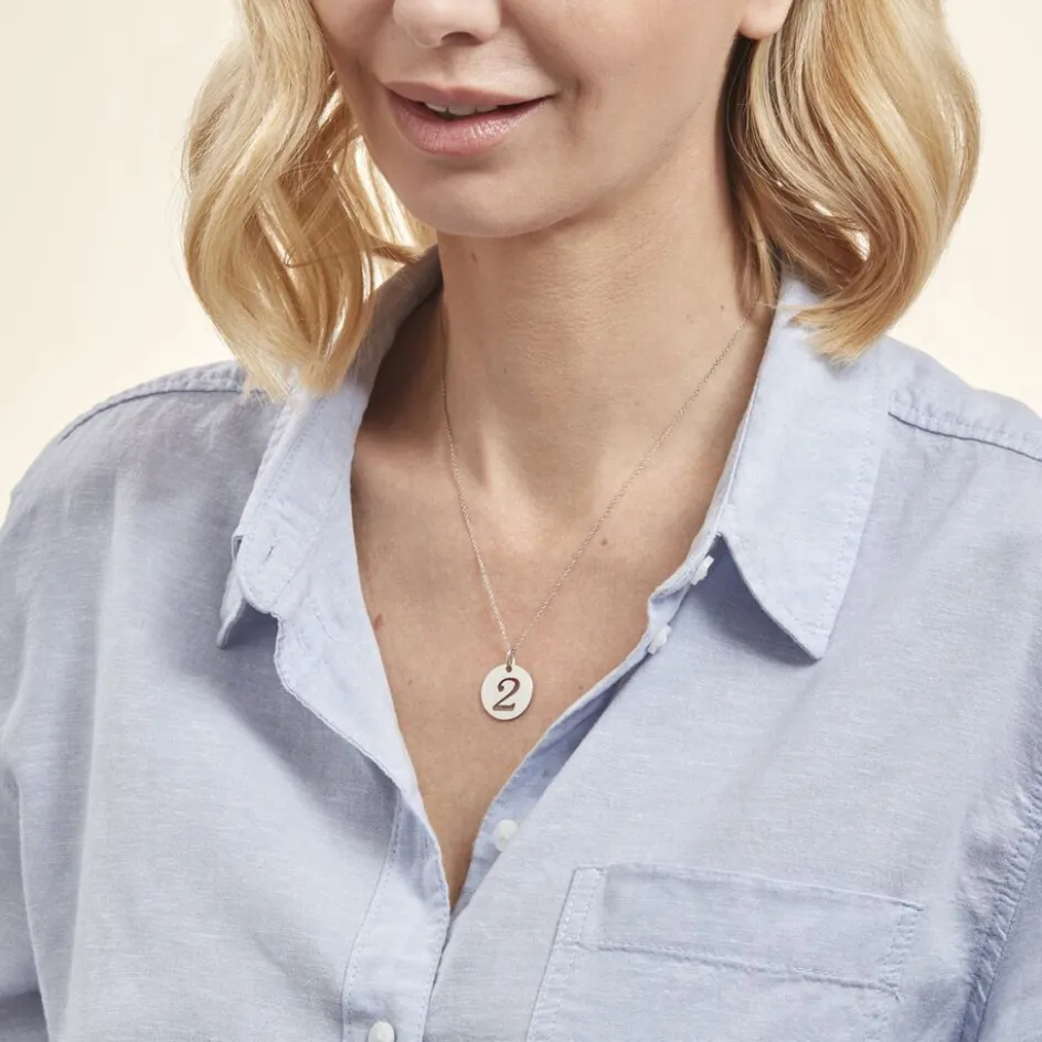 Pendentif Argent Blanc 925/1000 Pastille Chiffre 2 Diametre 18mm