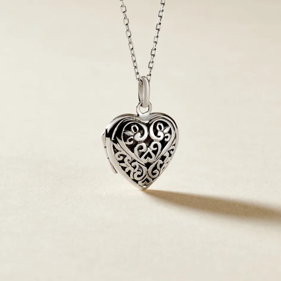 Pendentif Argent Blanc 925/1000 Cassolette Forme Coeur Motifs Arabesques Ajourees Diametre 25mm