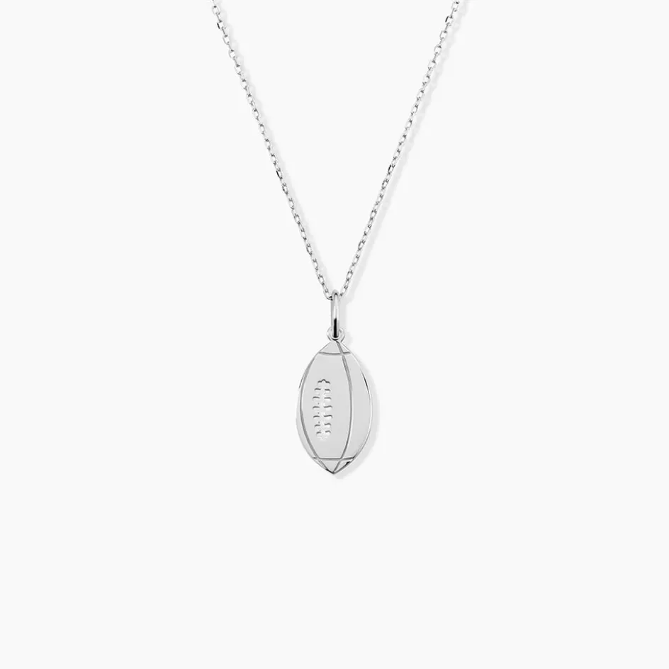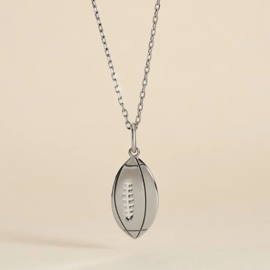 Pendentif Argent Blanc 925/1000 Forme Ballon De Rugby