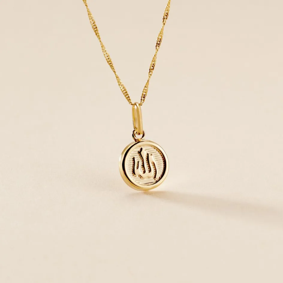 Medaille Or Jaune 375/1000 Ronde Motif Allah