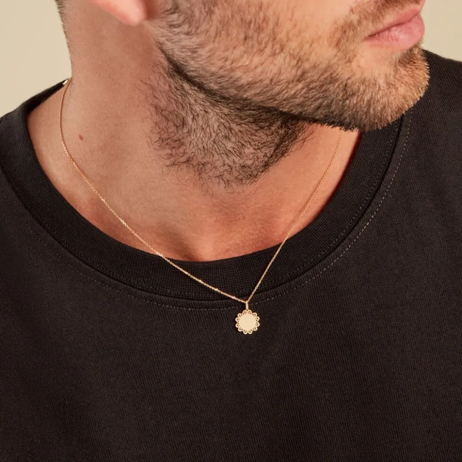 Pendentif Or Jaune 375/1000 Pastille Contour Filigrane Gravable Diametre 11.3mm