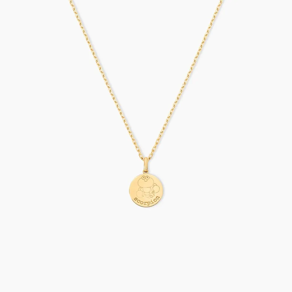 Pendentif Or Jaune 375/1000 Zodiaquemedaille Ronde Signe Scorpion
