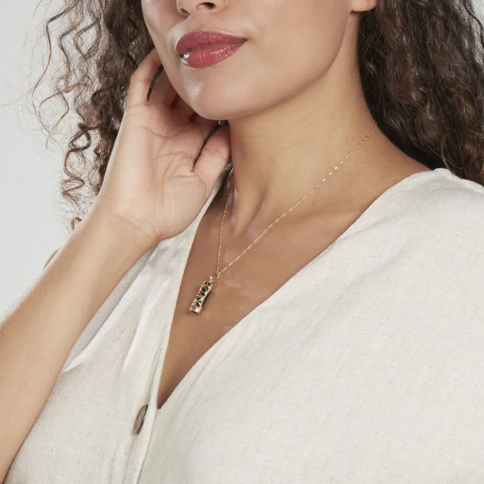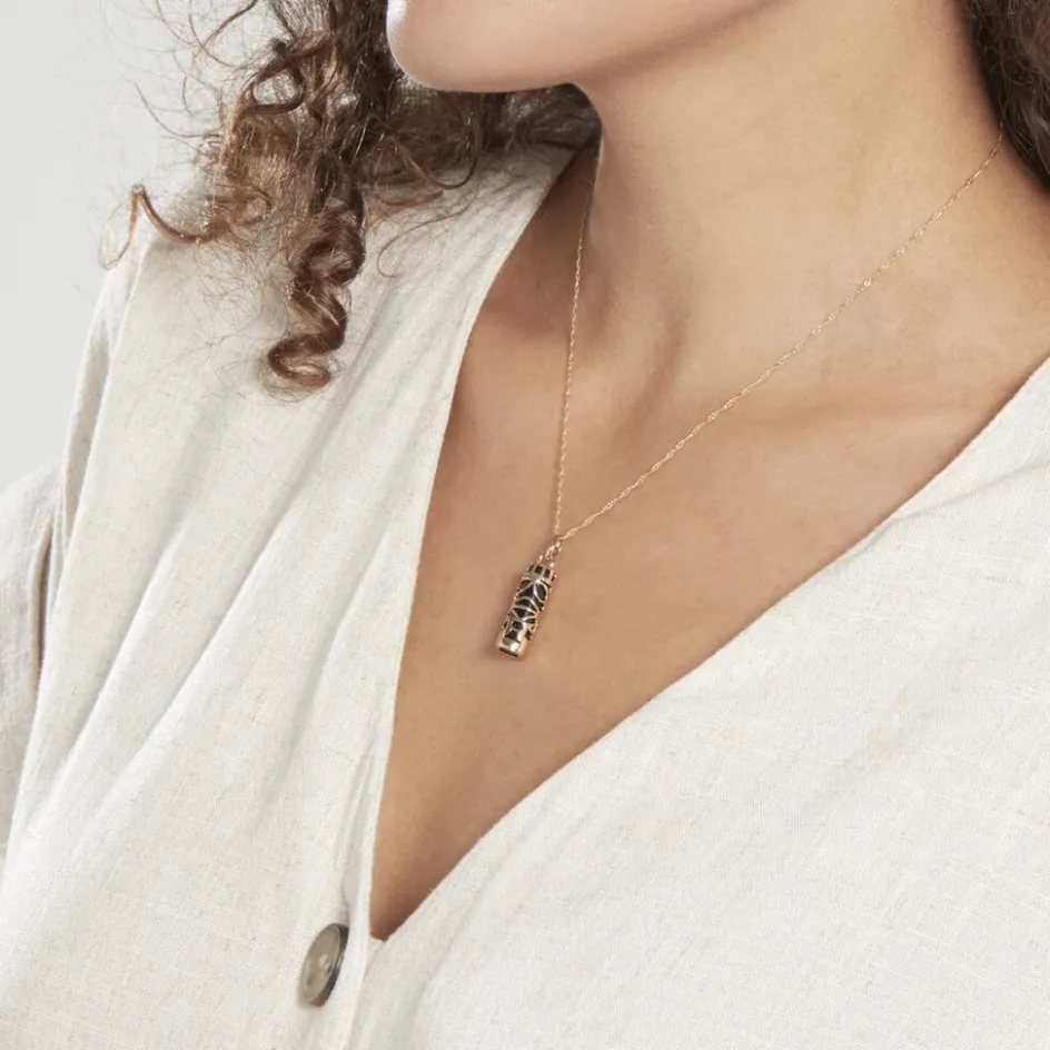 Pendentif Plaqué Or Jaune Forme Tube Motifs Ethnique Et Pierre Noire