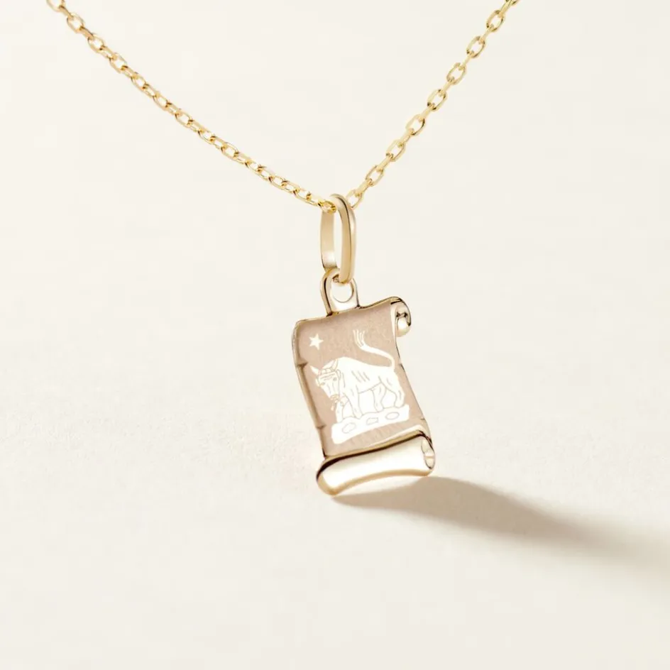 Pendentif Parchemin Or Jaune Signe Zodiaque Taureau