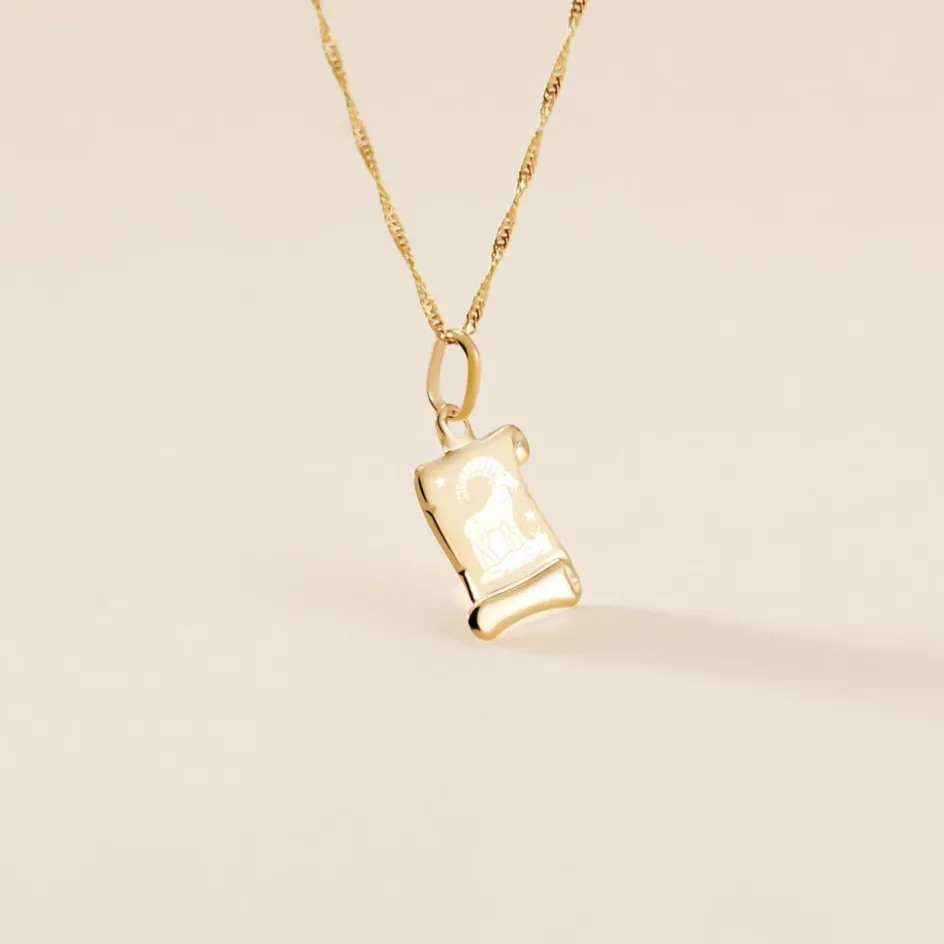 Pendentif Parchemin Or Jaune Signe Zodiaque Capricorne