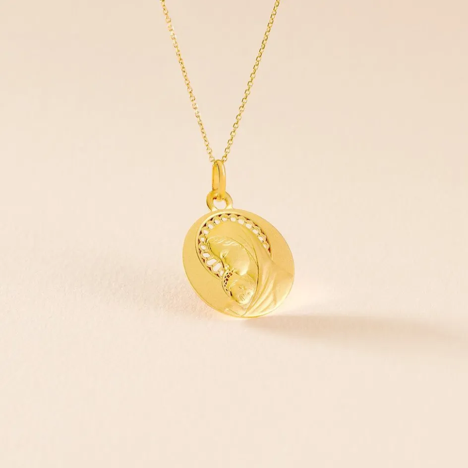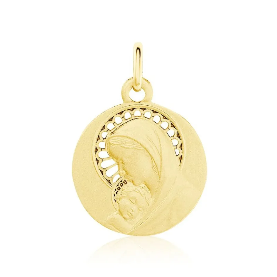 Medaille Or Jaune 750/1000 Vierge A L’enfant Effet Mat Diametre 18mm