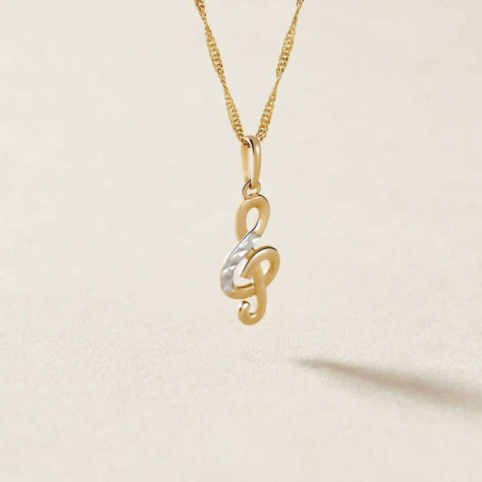 Pendentif Or Jaune 375/1000 Clef De Sol Diamante