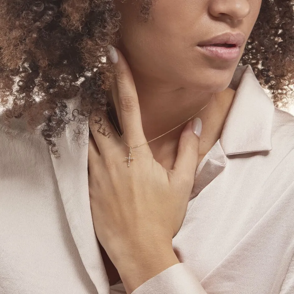 Pendentif Or Jaune 375/1000 Croix Oxyde De Zirconium