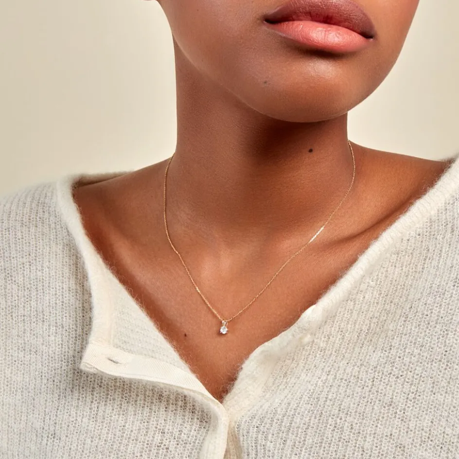 Pendentif Or Jaune 375/1000 Oxyde De Zirconium 0.25 Cts Serti Griffes