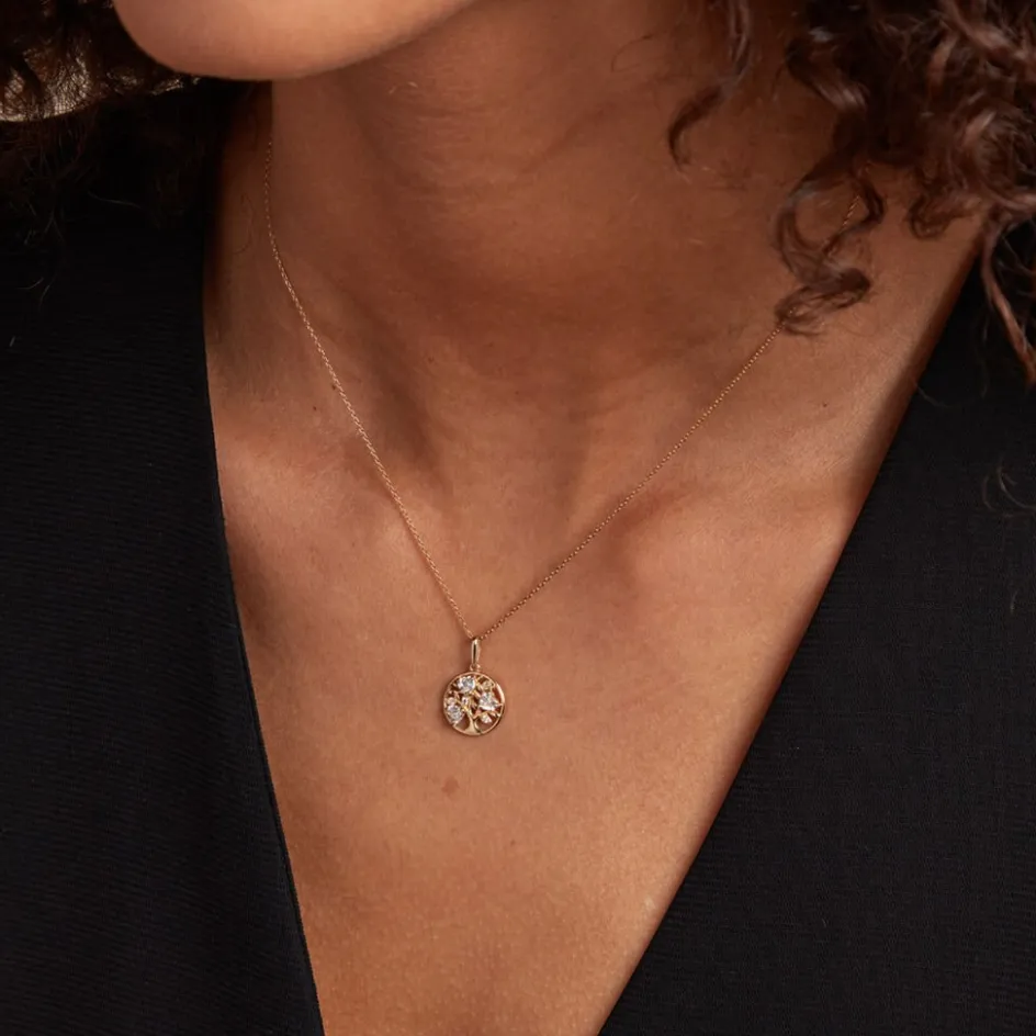 Pendentif Or Jaune 375/1000 Arbre De Vie Avec 3 C艙urs Oxydes De Zirconium