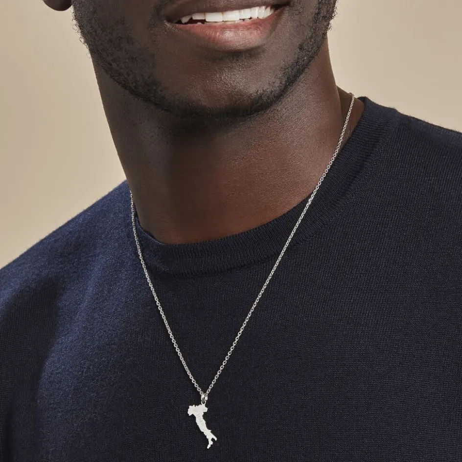 Pendentif Argent Blanc 925/1000 Carte De L’italie