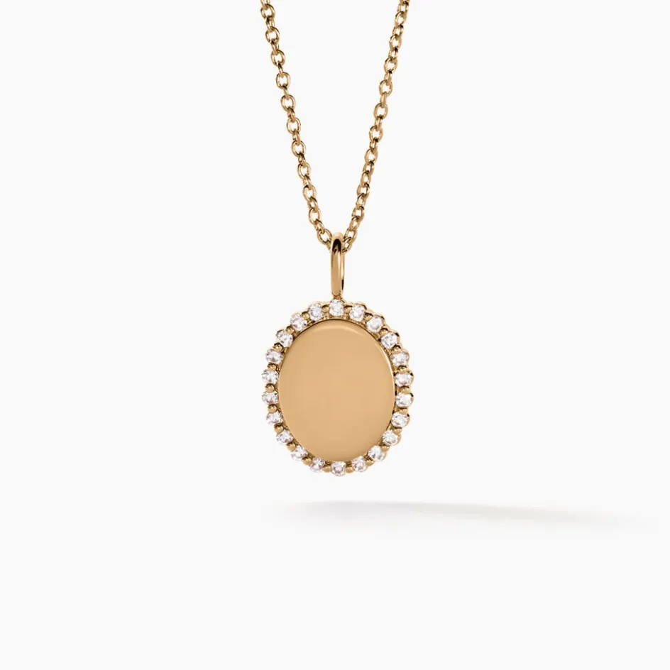 Pendentif Plaqué Or Jaune 750/1000 Ovale Entourage Oxydes De Zirconium