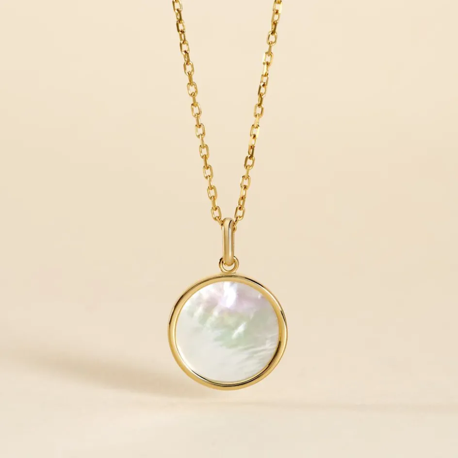 Pendentif Or Jaune 375/1000 Forme Ronde Lisse Nacre 1.95ct