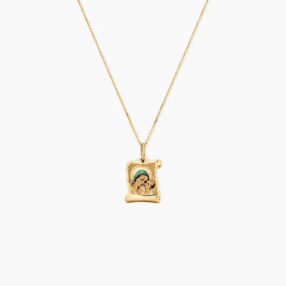 Pendentif Or Jaune 375/1000 Parchemin Vierge A L’enfant Resine De Couleur